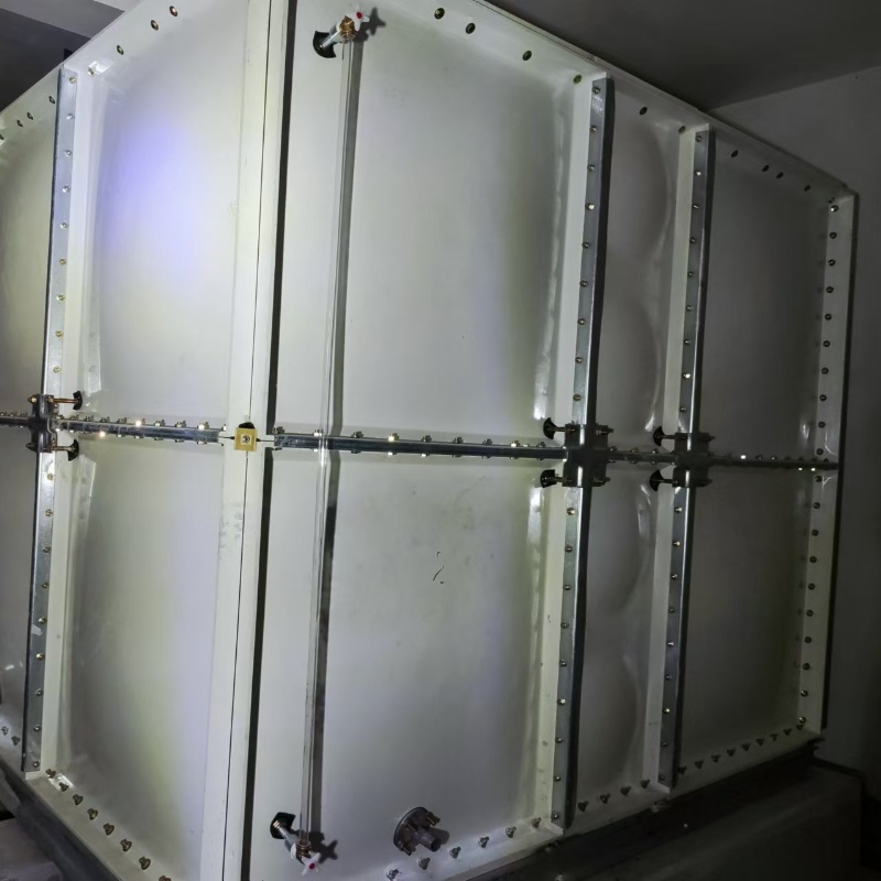 SMC水箱組裝就是用模壓的小塊,到施工現(xiàn)場組裝成大的水箱。外面要用角鋼進行固定的,角鋼搭出個水箱模型,在上面鋪玻璃鋼平板,拼縫處再現(xiàn)場多糊幾層方格布...